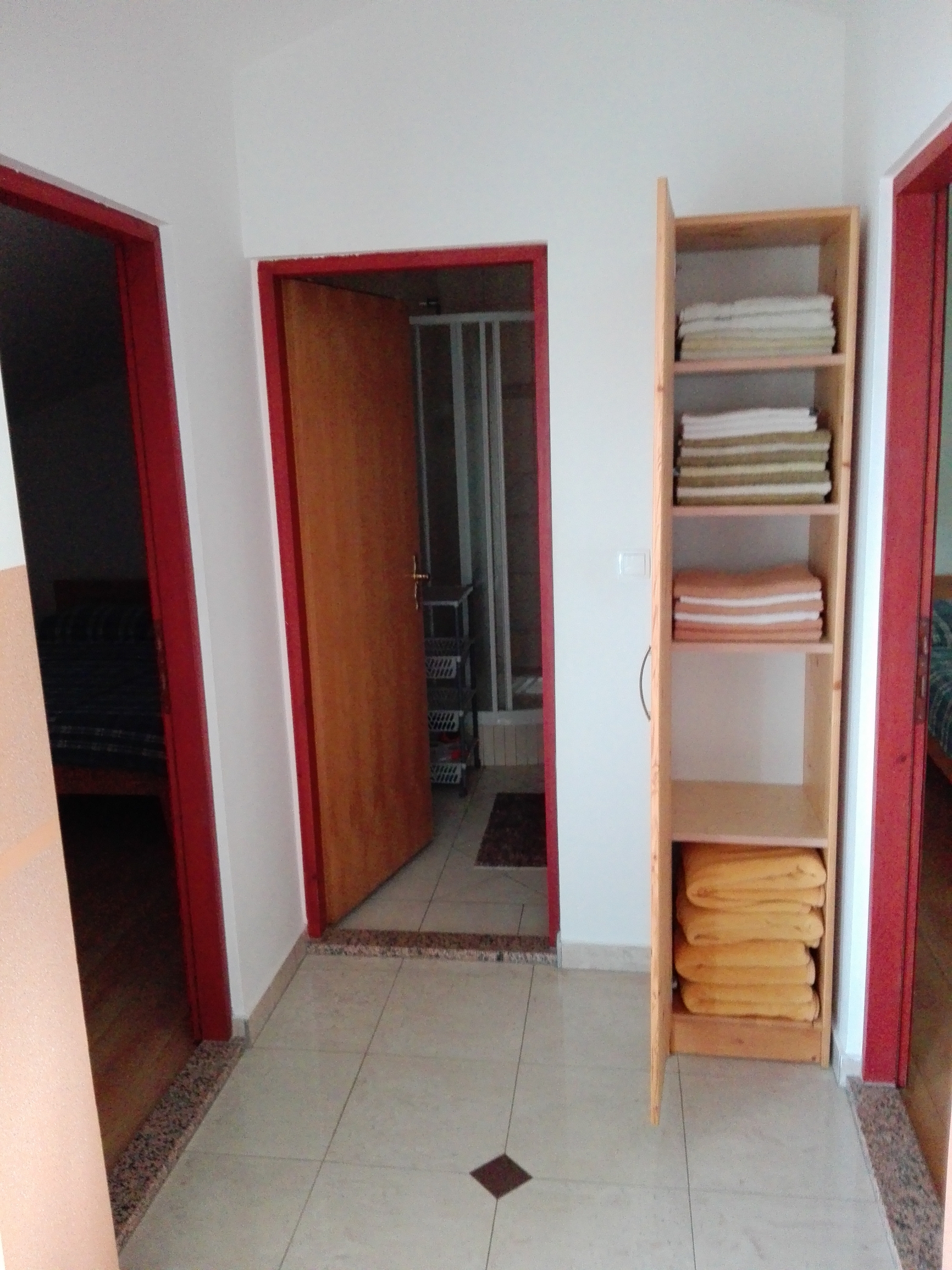 House 14134 in the town of Banjol, Rab - Kvarner has accommodation units of type Apartment (2), Studio flat (1) and is 300 m away from the sea. The nearest beach to this accommodation is a sand beach. Other guests may be found in this houses other apartments during your stay. During your holiday, your hosts will also be present in the house. The house owner is under no obligation to accept additional persons and pets that were not stated in the reservation request and it is necessary to report them in advance.AMENITIES Infield (Well-kept), Courtyard (500m2), Parking lot (Number of parking spaces: 4, Distance from the house: In the courtyard), Barbecue: shared, WiFi Internet, Laundry service, Hairdryer, Iron, Ironing board LOCATION AND ACCESS Facility is situated near a local road Local road between the property and the beach Car access possible: Yes The facility is situated in relatively quiet surroundings DISTANCES Sea: 300 m Beach: 300 m Center: 1.8 km Shop: 800 m Urgent medical care: 2.1 km Pharmacy: 1.9 km Exchange office: 1.7 km ATMBank machine: 1.2 km Tourist info: 1.7 km
