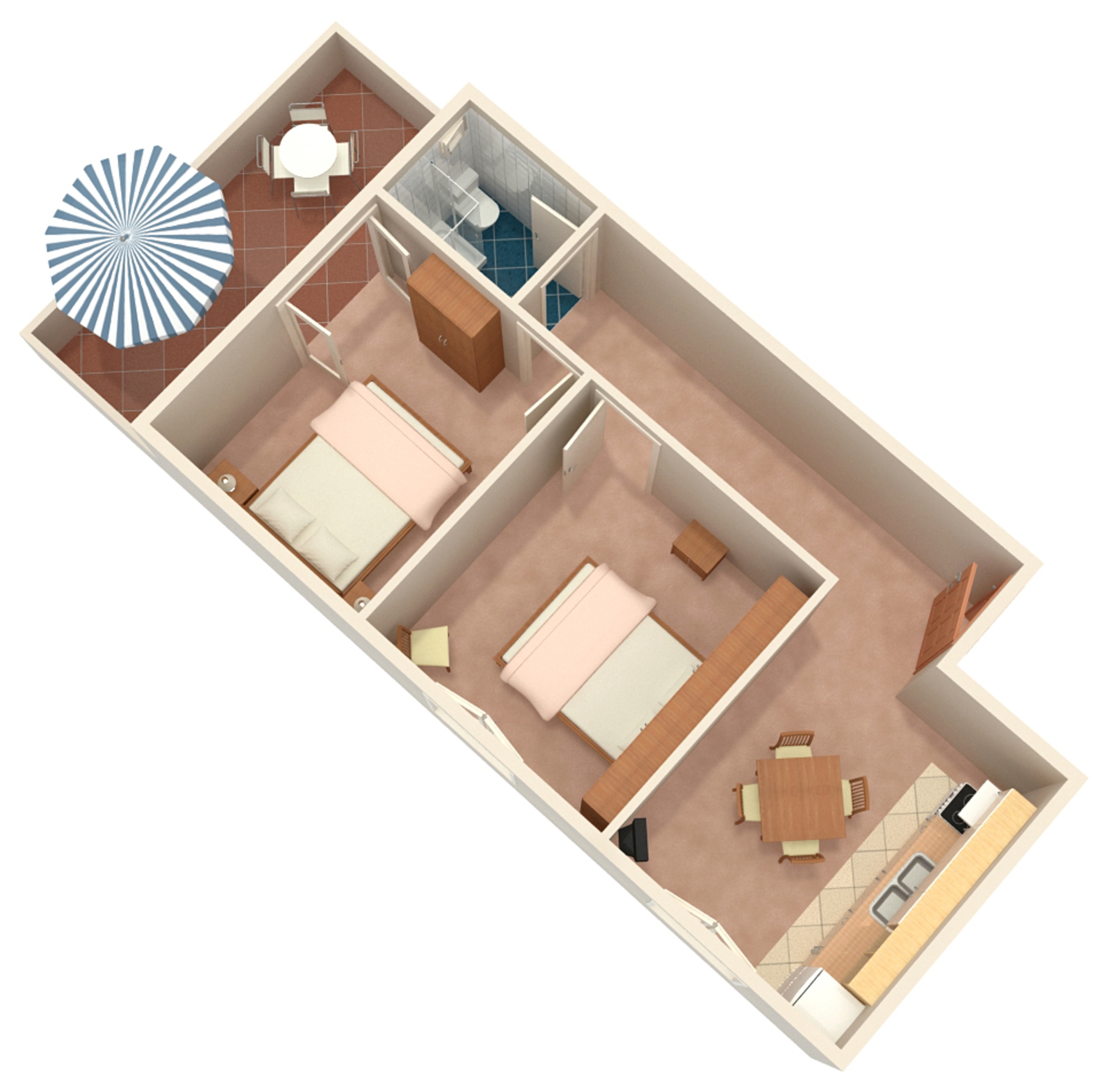 Apartment can accommodate 4 guests. Beds are situated in 2 sleeping rooms, within 41m2. Guests can use a private terrace to enjoy the warm summer evenings. The apartment offers the sea view. Food can be prepared using barbecue which is shared with other guests too. This accommodation unit welcomes pets at an additional charge. INCLUDED IN THE PRICE: tourist tax, final cleaning, air-conditioning, parking, internet. OBLIGATORY ADDITIONAL COSTS: short stay fee (surcharge depending on a number of booked nights: 30% - 1, 20% - 2, 10% - 3). OPTIONAL ADDITIONAL COSTS: pets (€5.00 per night). The availability of additional services for your chosen dates of stay, as well as their prices (if none are listed) must be checked ahead of time. Any additional services not shown in the price calculation are payable directly to the property owner and only if used by the visitor. Discounts to the base price: free day 14=13 (for reservations of 14 or more days you get one free day for the stay until 31122026).
