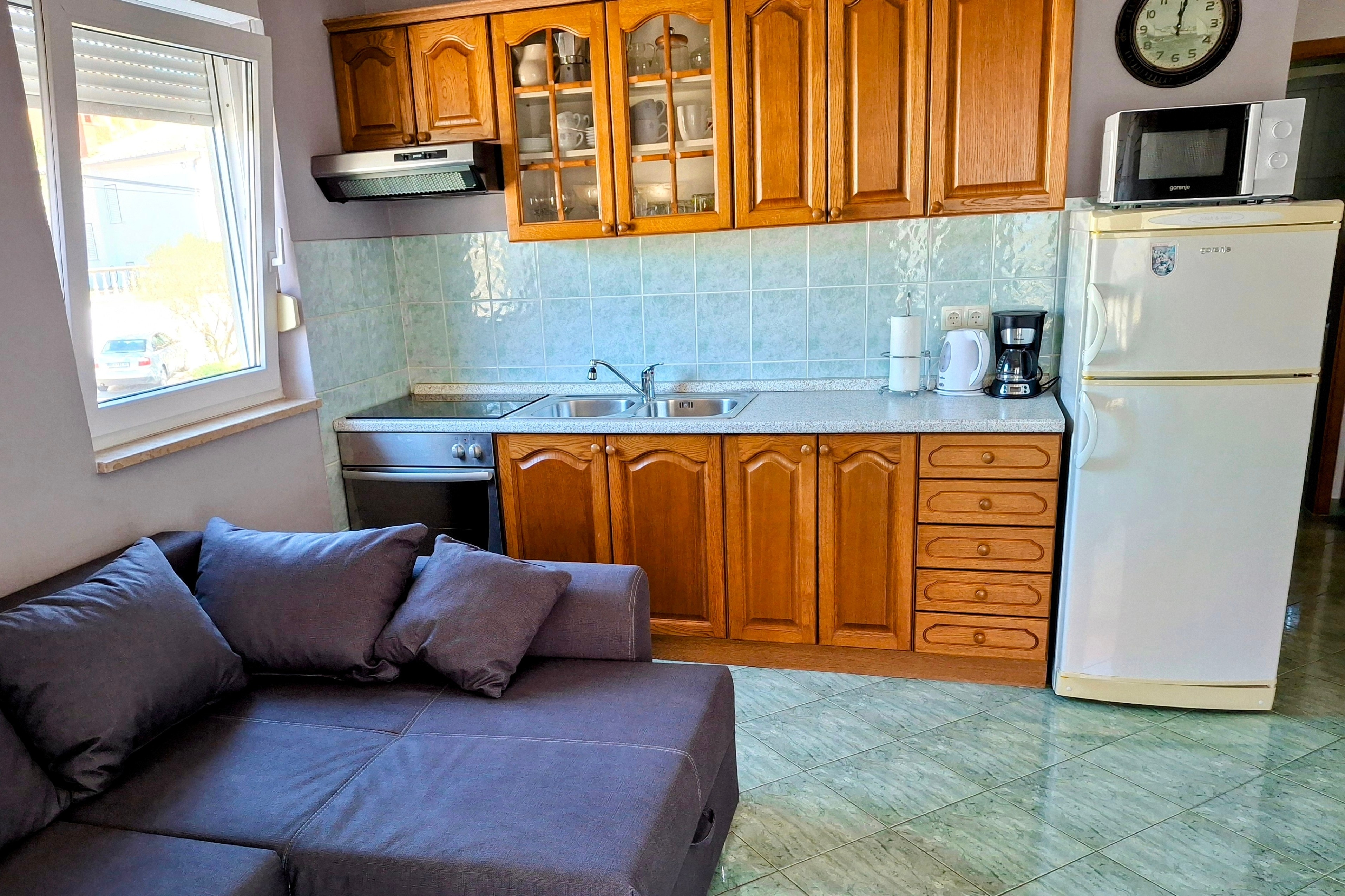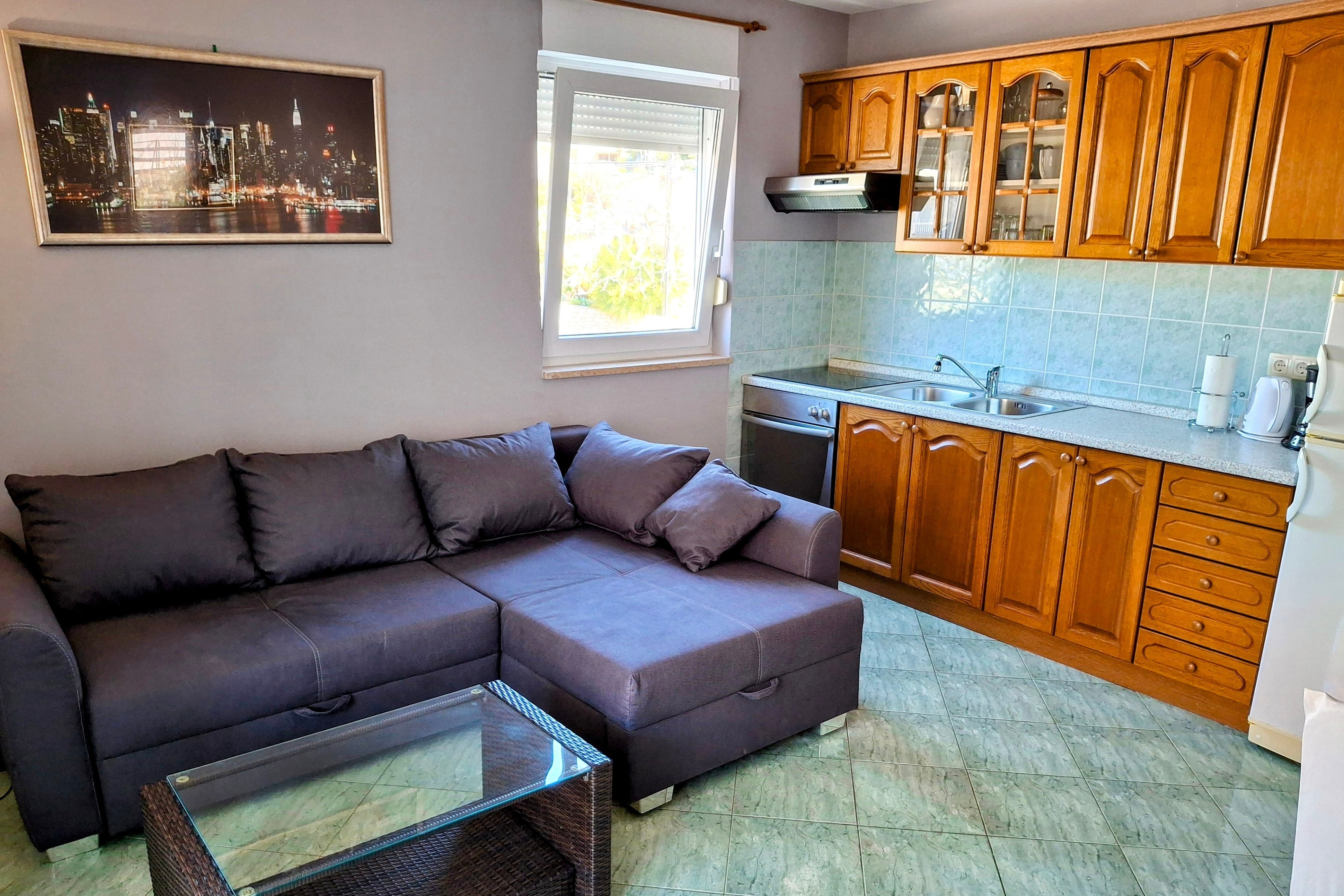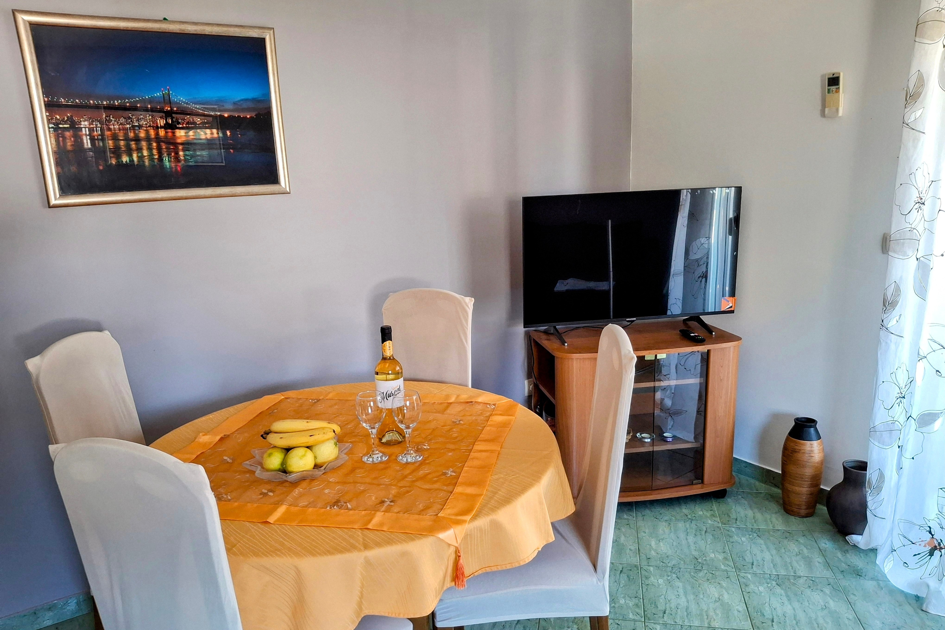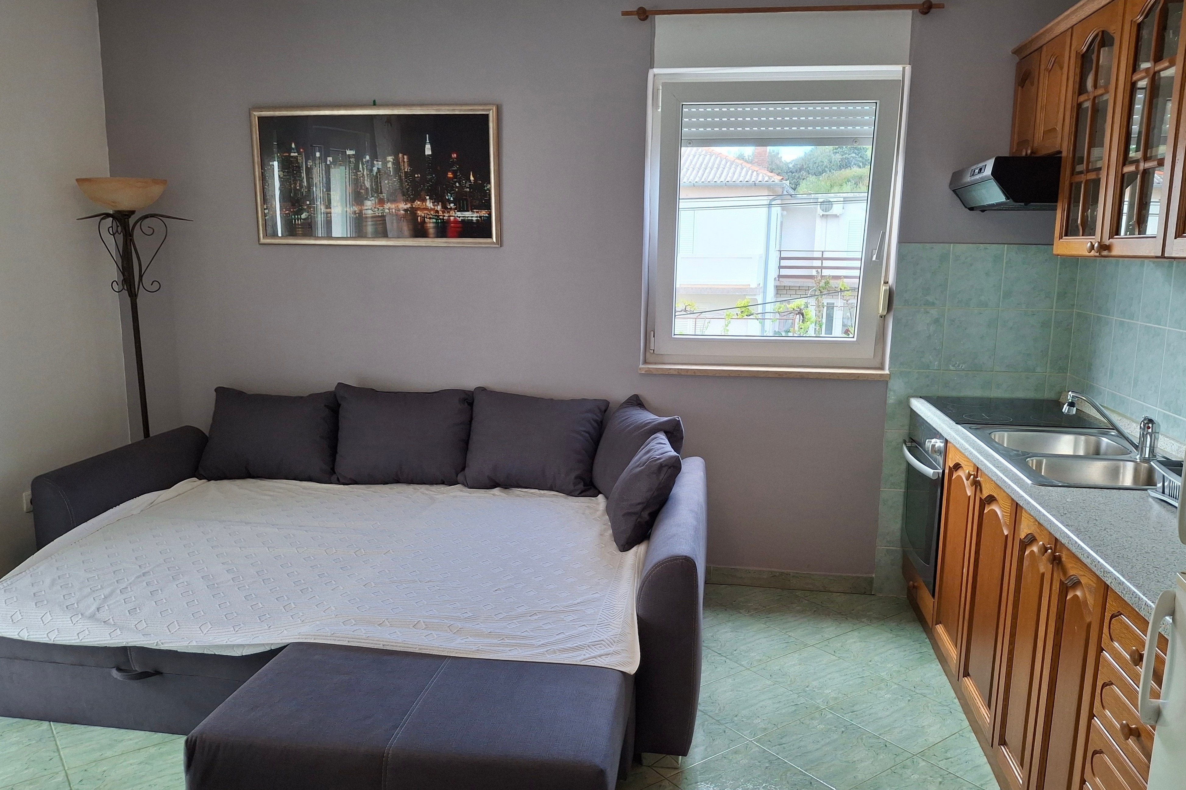 Apartment can accommodate 4 guests. Beds are situated in 1 sleeping rooms, but also in the living room, within 41m2. Guests can use a private balcony to enjoy the warm summer evenings. Food can be prepared using barbecue which is shared with other guests too. INCLUDED IN THE PRICE: tourist tax, final cleaning, air-conditioning, parking, internet, iron, ironing board, hairdryer, portable barbecue. The availability of additional services for your chosen dates of stay, as well as their prices (if none are listed) must be checked ahead of time. Any additional services not shown in the price calculation are payable directly to the property owner and only if used by the visitor.