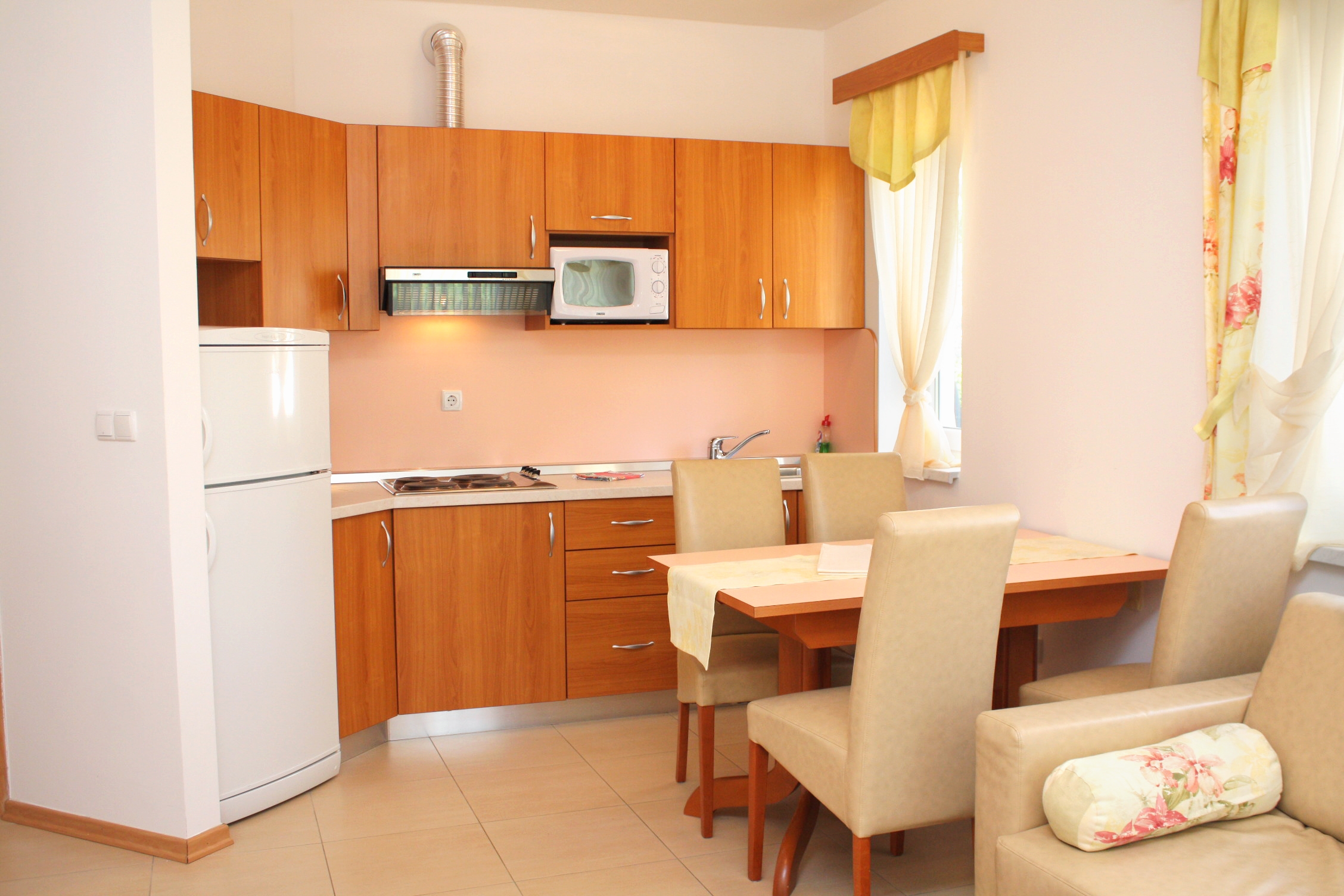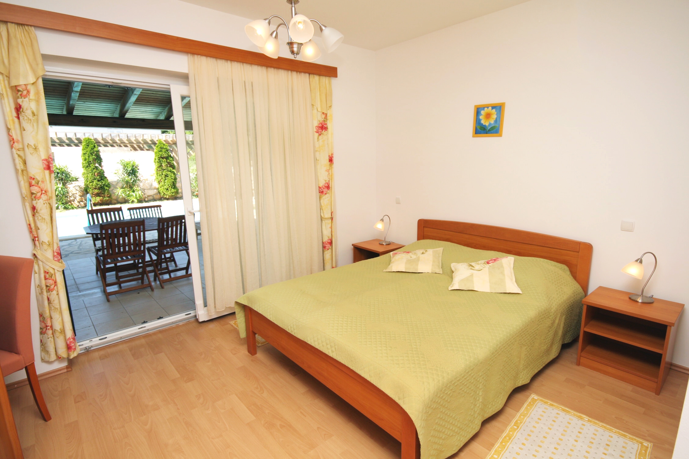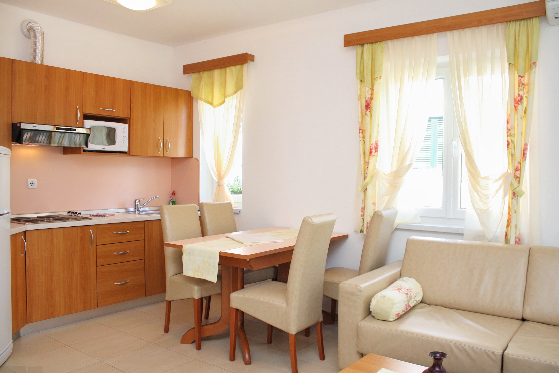 Apartment can accommodate 4 guests. Beds are situated in 1 sleeping rooms, but also in the living room, within 38m2. Guests can use a private terrace to enjoy the warm summer evenings. Food can be prepared using barbecue which is shared with other guests too. Shared pool is on disposal during stay. For the booked accommodation unit the deposit is paid directly to the owner upon check-in (deposit amount is displayed on the website) INCLUDED IN THE PRICE: final cleaning, air-conditioning, pool, parking, internet, hairdryer. OBLIGATORY ADDITIONAL COSTS: tourist tax (adults €0.93 - €1.90 nightperson, discount for children aged 12 - 17), deposit (€100.00 one-time payment). The availability of additional services for your chosen dates of stay, as well as their prices (if none are listed) must be checked ahead of time. Any additional services not shown in the price calculation are payable directly to the property owner and only if used by the visitor.