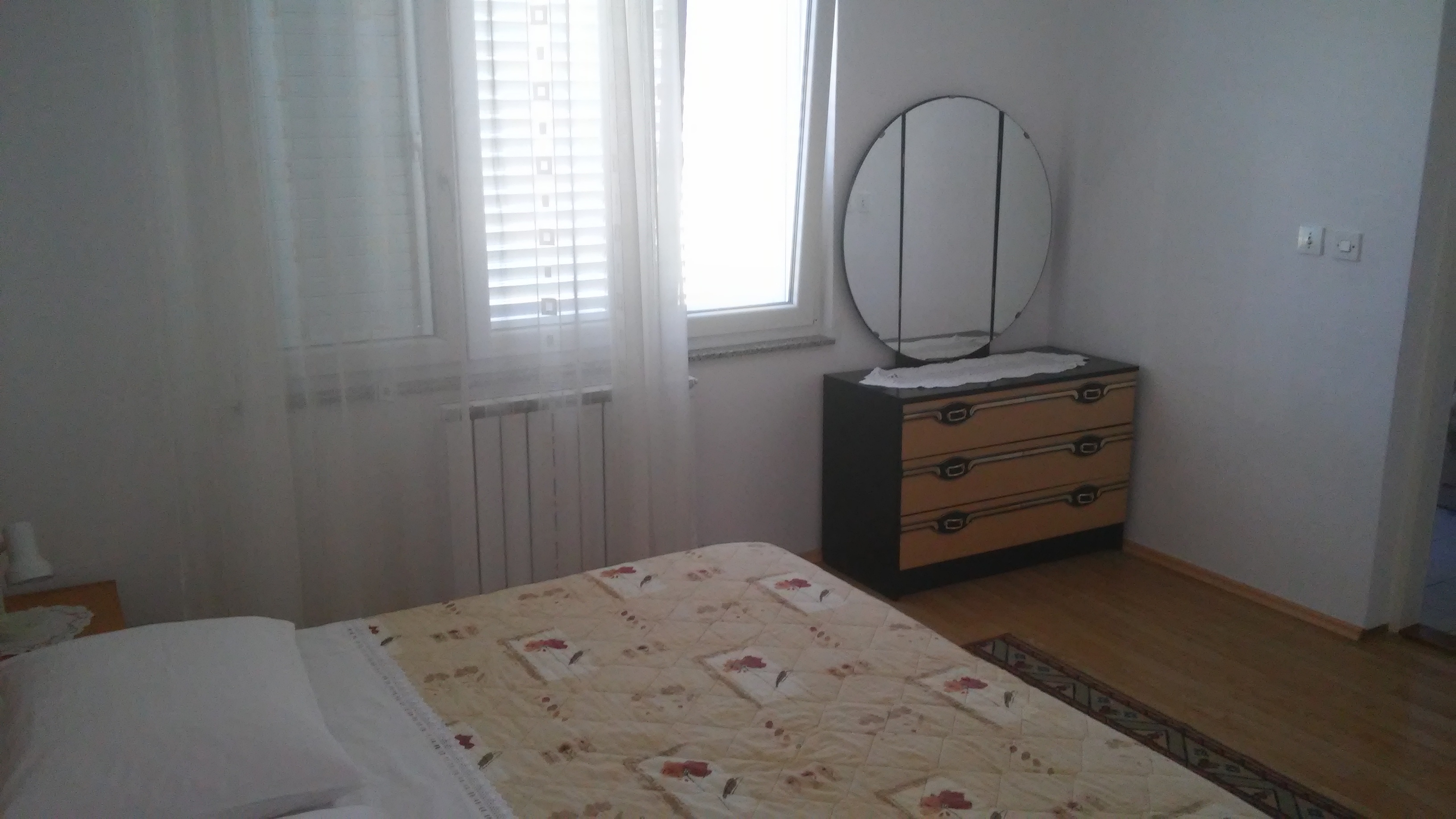 Apartment can accommodate 3 guests. Beds are situated in 1 sleeping rooms, but also in the living room, within 33m2. Guests can use a private balcony to enjoy the warm summer evenings. Food can be prepared using barbecue which is shared with other guests too. This accommodation unit welcomes pets at an additional charge. INCLUDED IN THE PRICE: tourist tax, final cleaning, air-conditioning, parking, internet, iron, ironing board, hairdryer. OPTIONAL ADDITIONAL COSTS: central heating (€5.00 per night), laundry (€5.00 washing), pets (€5.00 per night), additional bed (€5.00 per night). The availability of additional services for your chosen dates of stay, as well as their prices (if none are listed) must be checked ahead of time. Any additional services not shown in the price calculation are payable directly to the property owner and only if used by the visitor. Discounts to the base price: free day 14=13 (for reservations of 14 or more days you get one free day for the stay until 31122026).