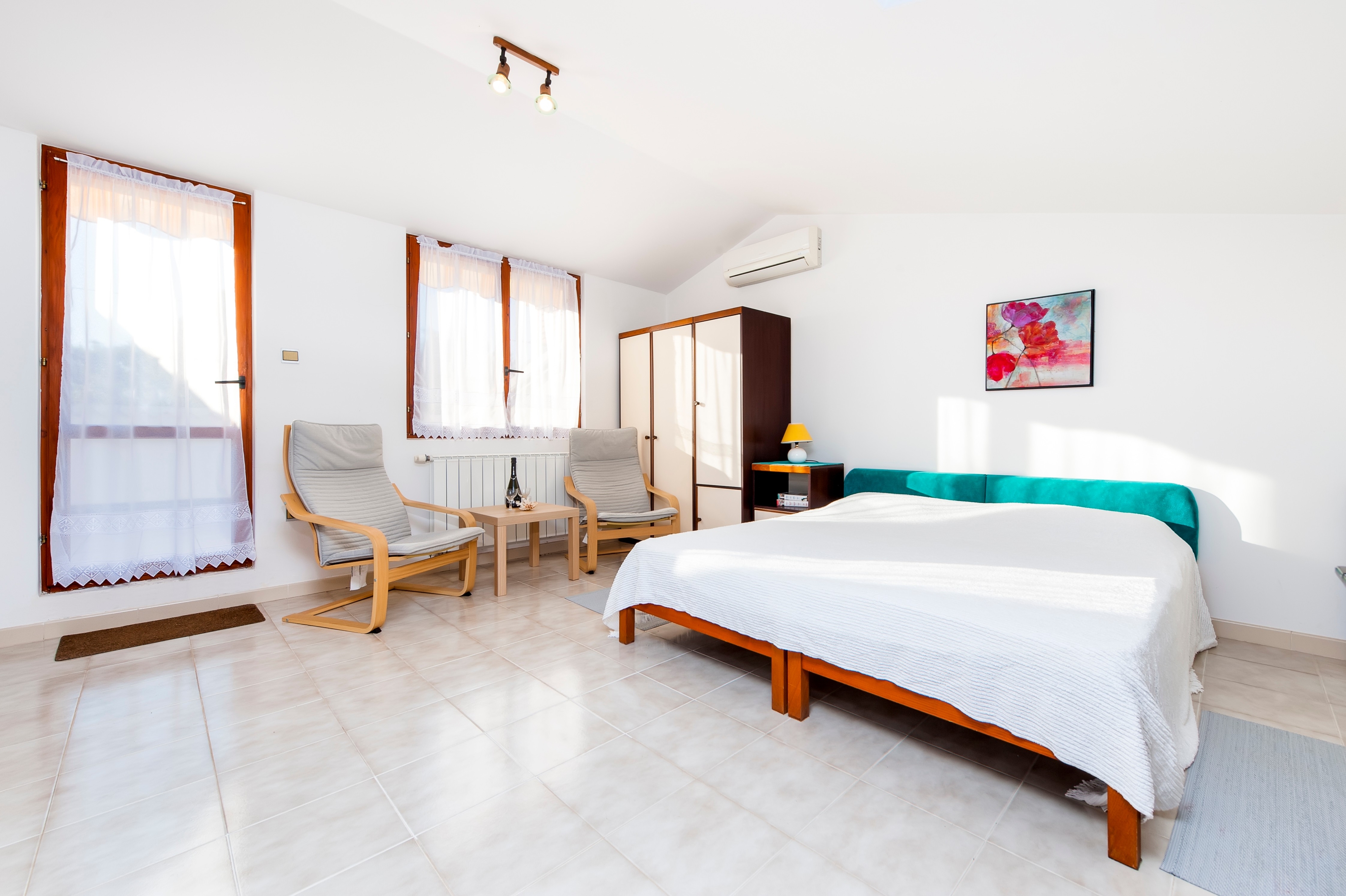 Apartment can accommodate 3 guests. Beds are situated in 1 sleeping rooms, within 45m2. Guests can use a private terrace to enjoy the warm summer evenings. The apartment offers the sea view. Food can be prepared using barbecue which is shared with other guests too. This accommodation unit welcomes pets at an additional charge. INCLUDED IN THE PRICE: tourist tax, final cleaning, air-conditioning, parking, internet, laundry, iron, ironing board, hairdryer, portable barbecue, sunshade. OBLIGATORY ADDITIONAL COSTS: short stay fee (surcharge depending on a number of booked nights: 30% - 1, 20% - 2, 10% - 3). OPTIONAL ADDITIONAL COSTS: pets (€5.00 per night), additional bed (€30.00 per night). The availability of additional services for your chosen dates of stay, as well as their prices (if none are listed) must be checked ahead of time. Any additional services not shown in the price calculation are payable directly to the property owner and only if used by the visitor.