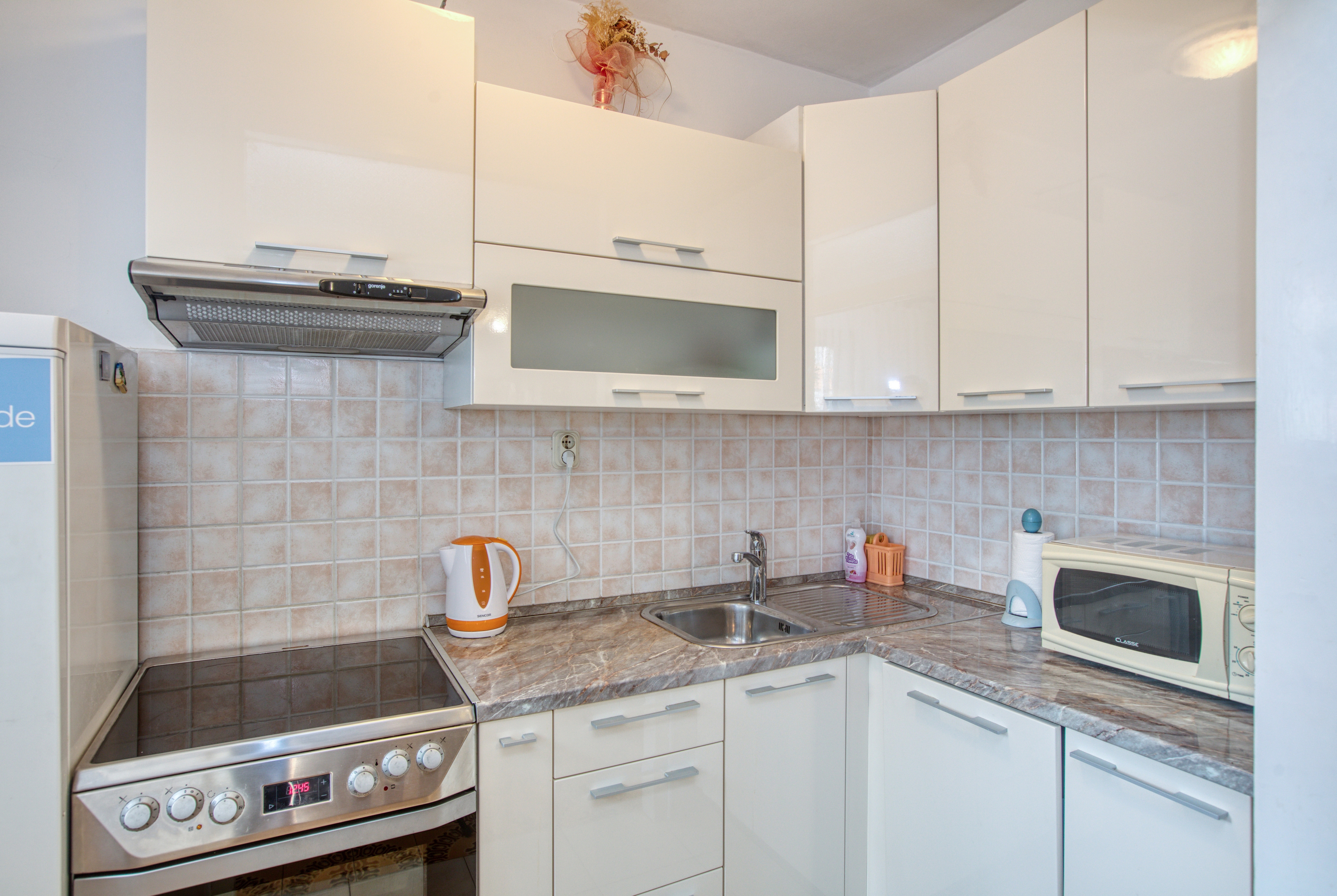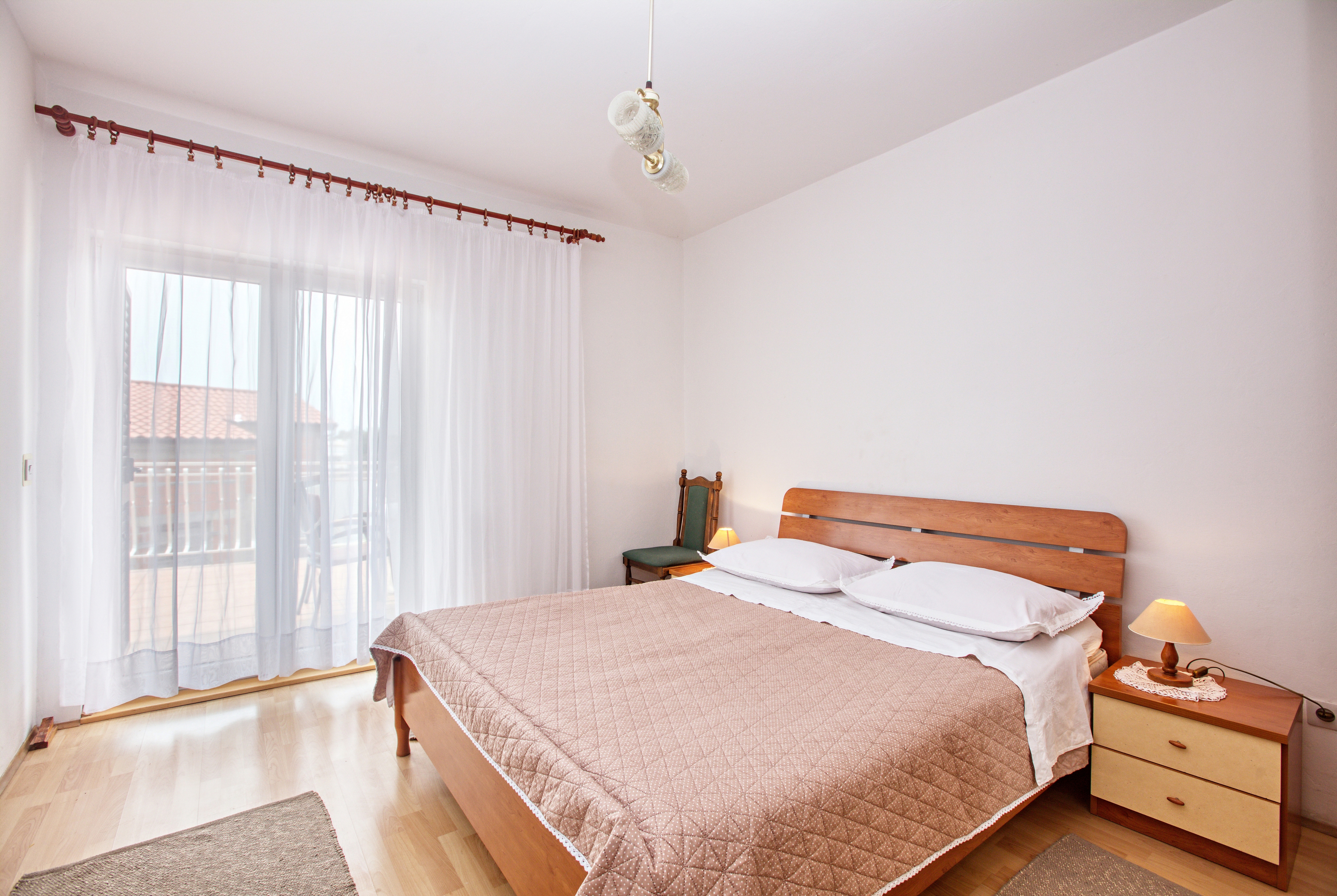 Apartment can accommodate 8 guests. Beds are situated in 4 sleeping rooms, within 70m2. Guests can use a private terrace to enjoy the warm summer evenings. The apartment offers the sea view. Food can be prepared using barbecue which is shared with other guests too. INCLUDED IN THE PRICE: tourist tax, final cleaning, air-conditioning, parking, internet, iron, ironing board, hairdryer. OBLIGATORY ADDITIONAL COSTS: short stay fee (surcharge depending on a number of booked nights: 30% - 1, 20% - 2, 10% - 3). The availability of additional services for your chosen dates of stay, as well as their prices (if none are listed) must be checked ahead of time. Any additional services not shown in the price calculation are payable directly to the property owner and only if used by the visitor.