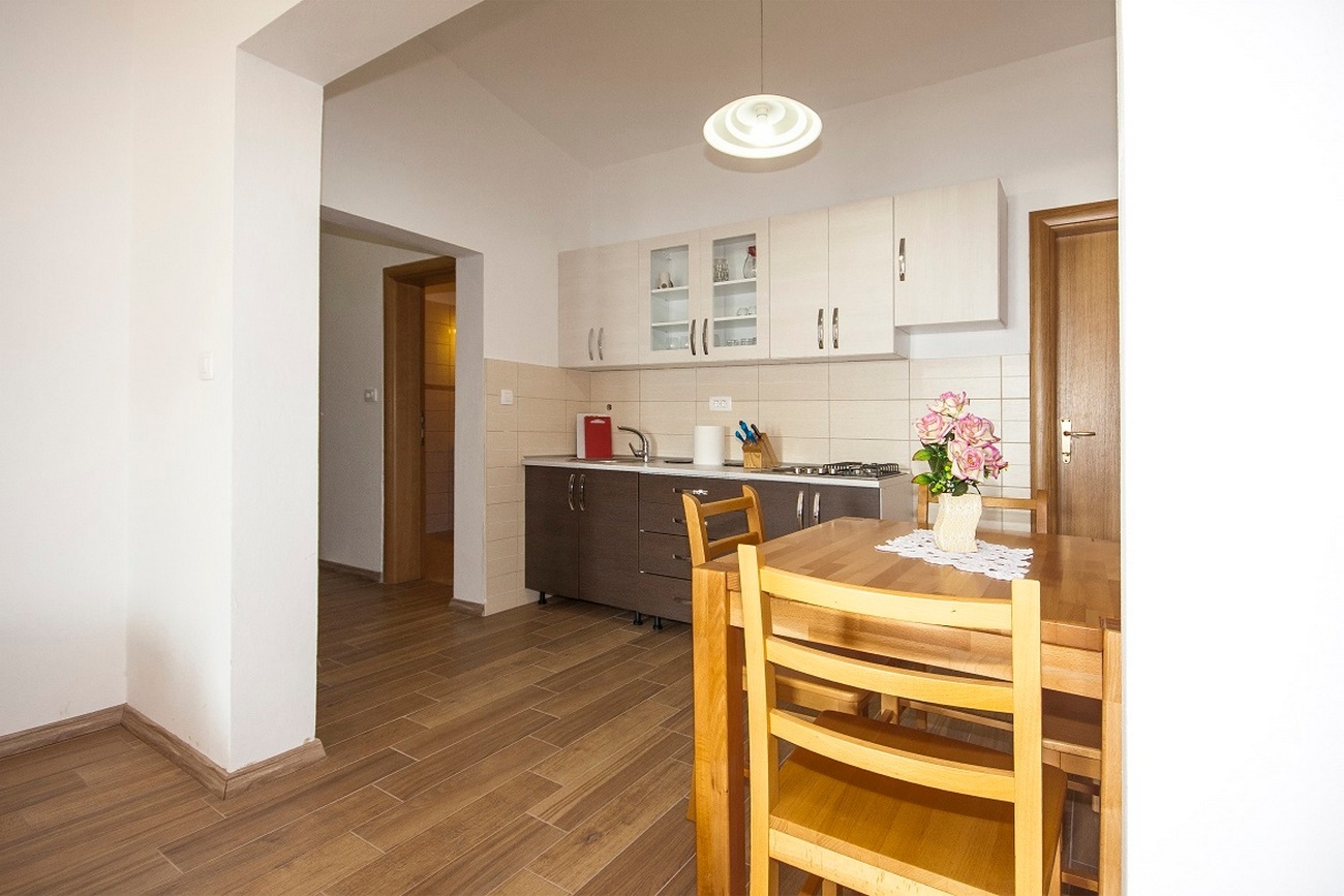 Apartment can accommodate 4 guests. Beds are situated in 1 sleeping rooms, but also in the living room, within 41m2. Guests can use a private terrace to enjoy the warm summer evenings. The apartment offers the sea view. Food can be prepared using barbecue which is shared with other guests too. INCLUDED IN THE PRICE: tourist tax, final cleaning, parking, internet, iron, ironing board, hairdryer, portable barbecue. OBLIGATORY ADDITIONAL COSTS: short stay fee (surcharge depending on a number of booked nights: 30% - 1, 20% - 2, 10% - 3). OPTIONAL ADDITIONAL COSTS: air-conditioning (€5.00 per night). The availability of additional services for your chosen dates of stay, as well as their prices (if none are listed) must be checked ahead of time. Any additional services not shown in the price calculation are payable directly to the property owner and only if used by the visitor. Discounts to the base price: free day 14=13 (for reservations of 14 or more days you get one free day for the stay until 31122026).