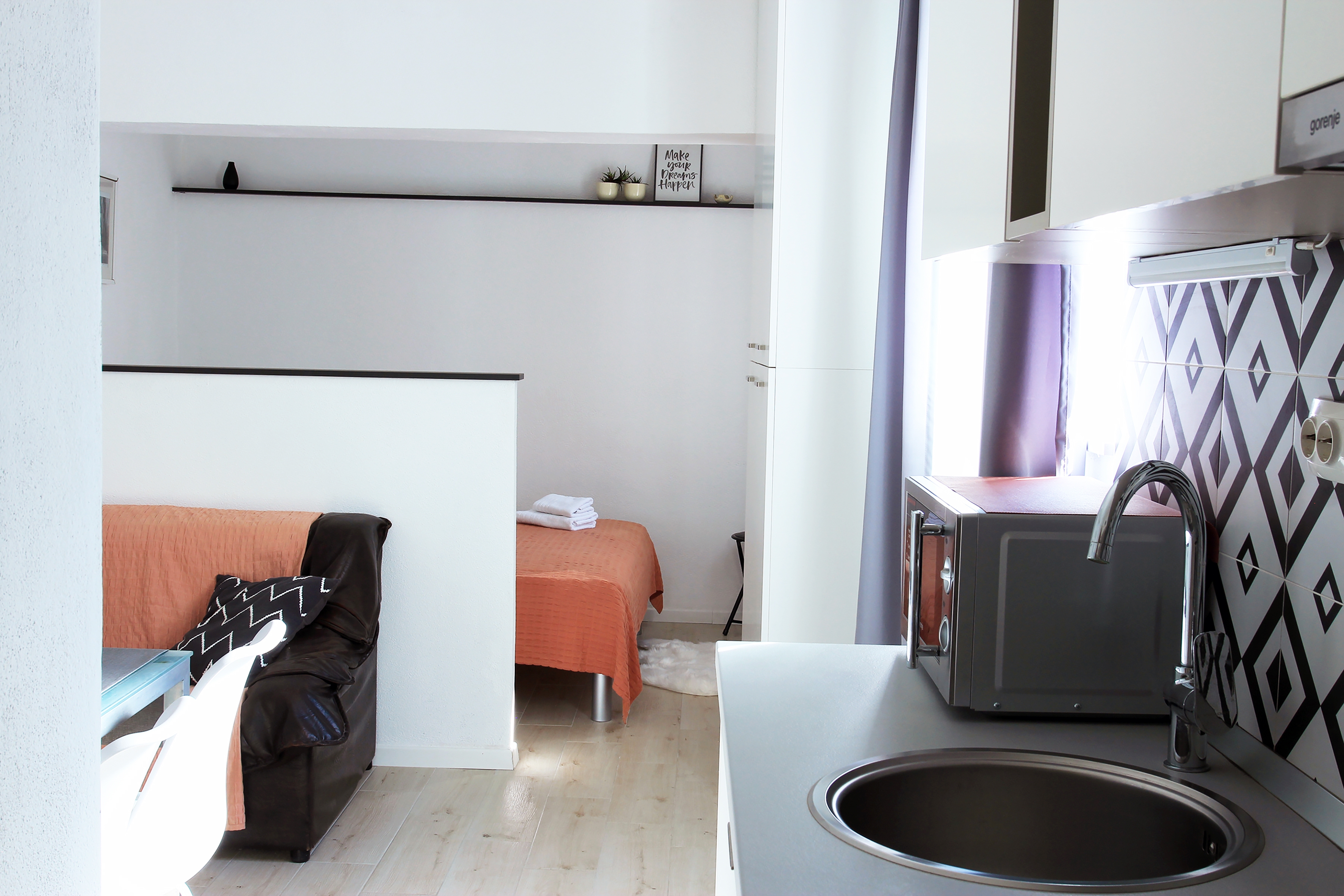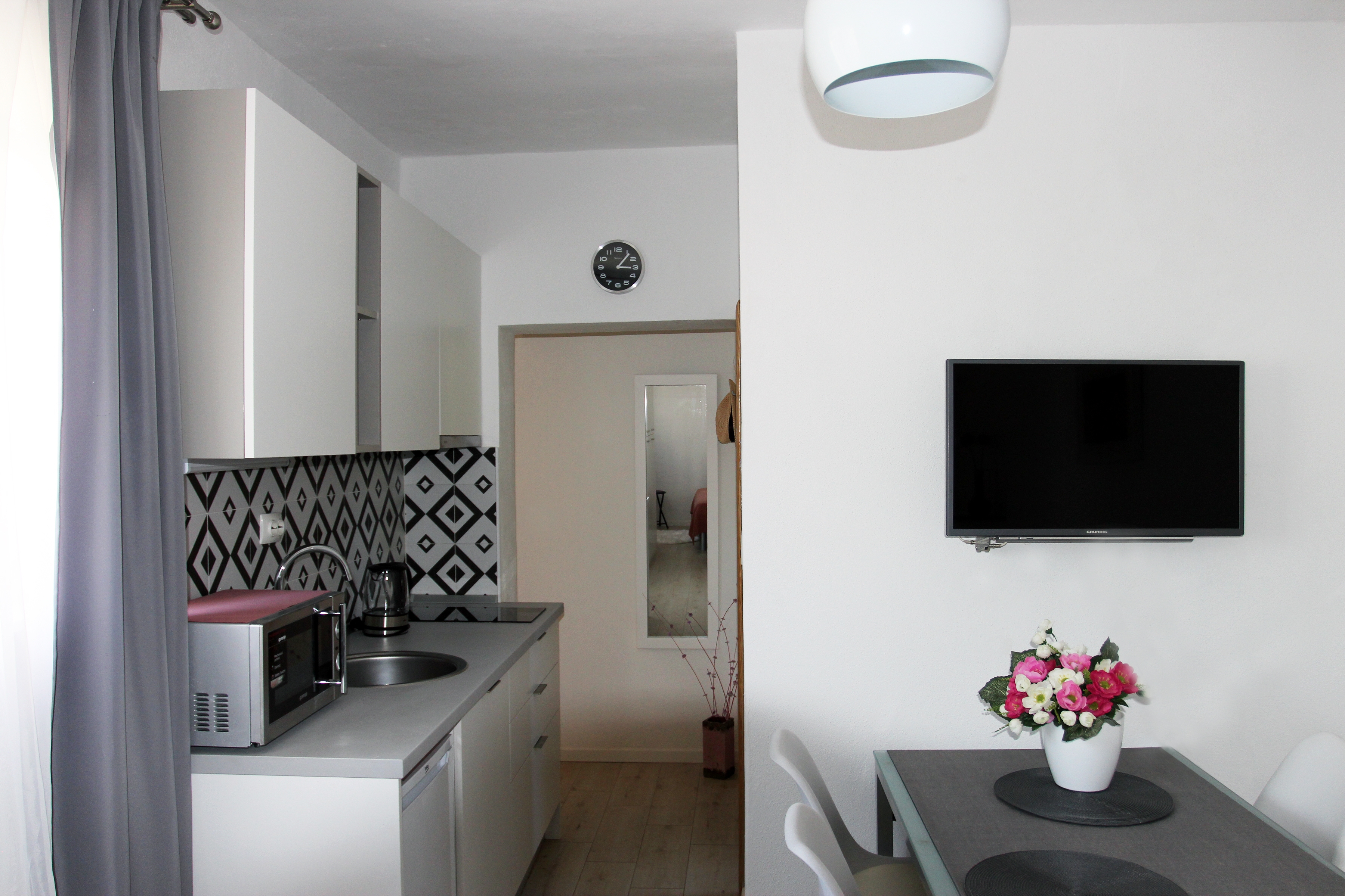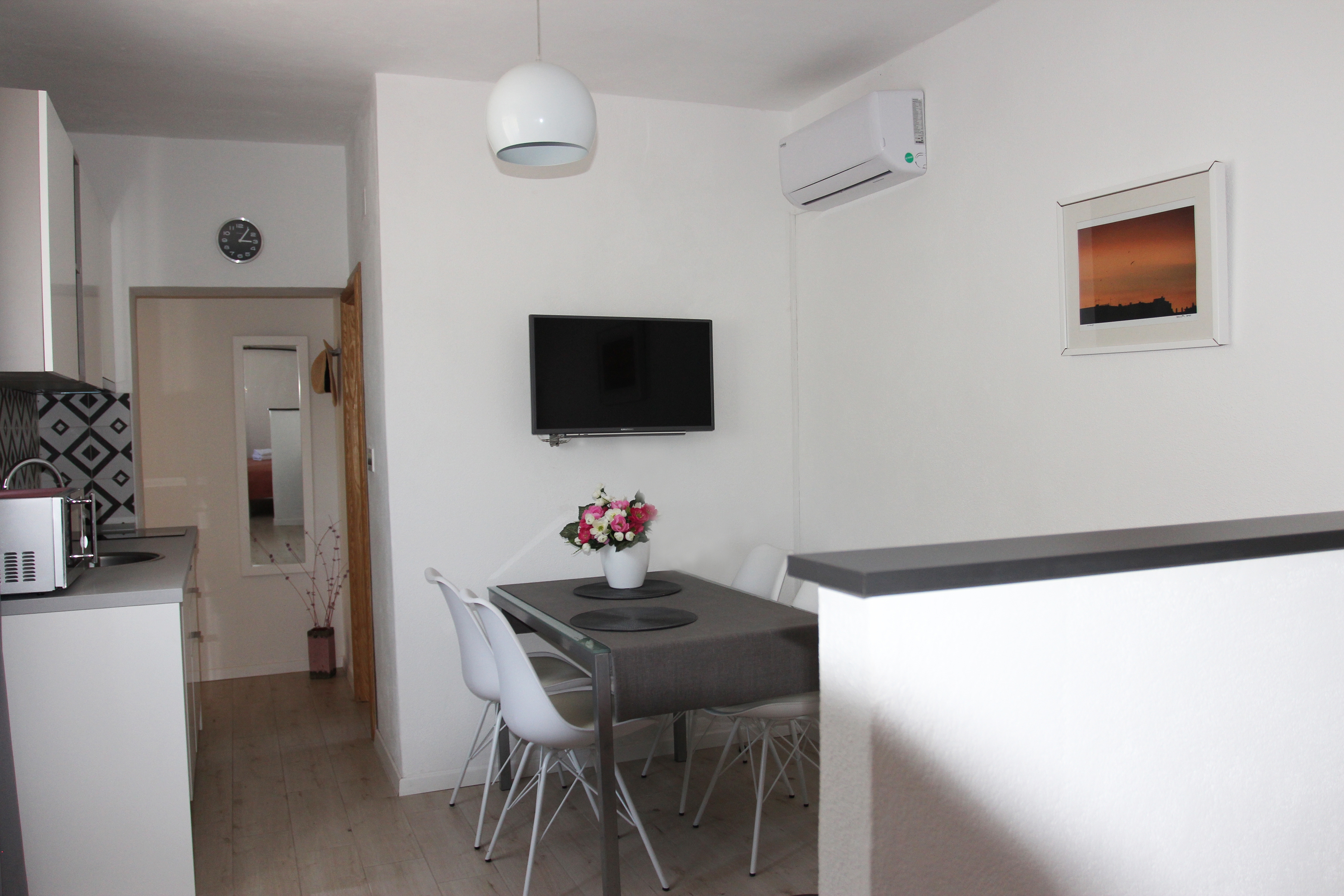 Apartment can accommodate 4 guests. Beds are situated in 1 sleeping rooms, but also in the living room, within 33m2. Guests can use a private terrace to enjoy the warm summer evenings. Food can be prepared using barbecue which is shared with other guests too. INCLUDED IN THE PRICE: tourist tax, final cleaning, air-conditioning, parking, internet, iron, ironing board, hairdryer. OBLIGATORY ADDITIONAL COSTS: short stay fee (surcharge depending on a number of booked nights: 30% - 1, 20% - 2, 10% - 3). OPTIONAL ADDITIONAL COSTS: laundry (€10.00 washing). The availability of additional services for your chosen dates of stay, as well as their prices (if none are listed) must be checked ahead of time. Any additional services not shown in the price calculation are payable directly to the property owner and only if used by the visitor. Discounts to the base price: free day 28=25 (for stays of 28 days or more, we give you 3 days free of charge for the stay until 31122026).