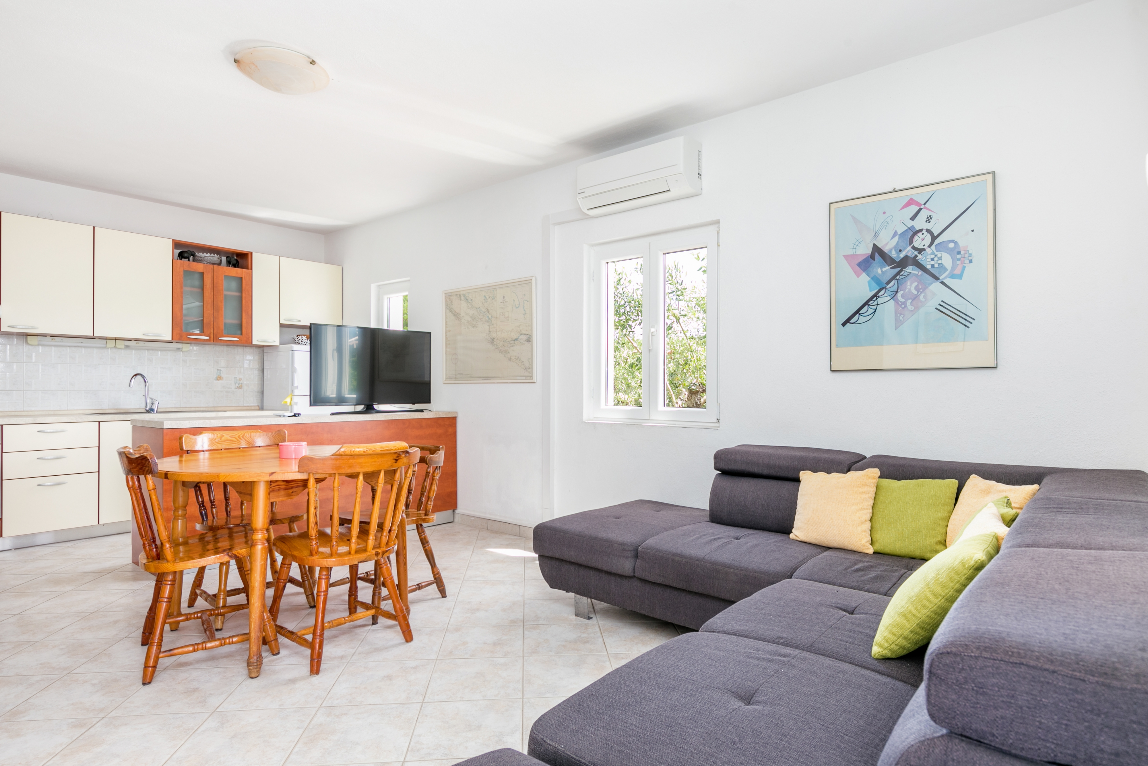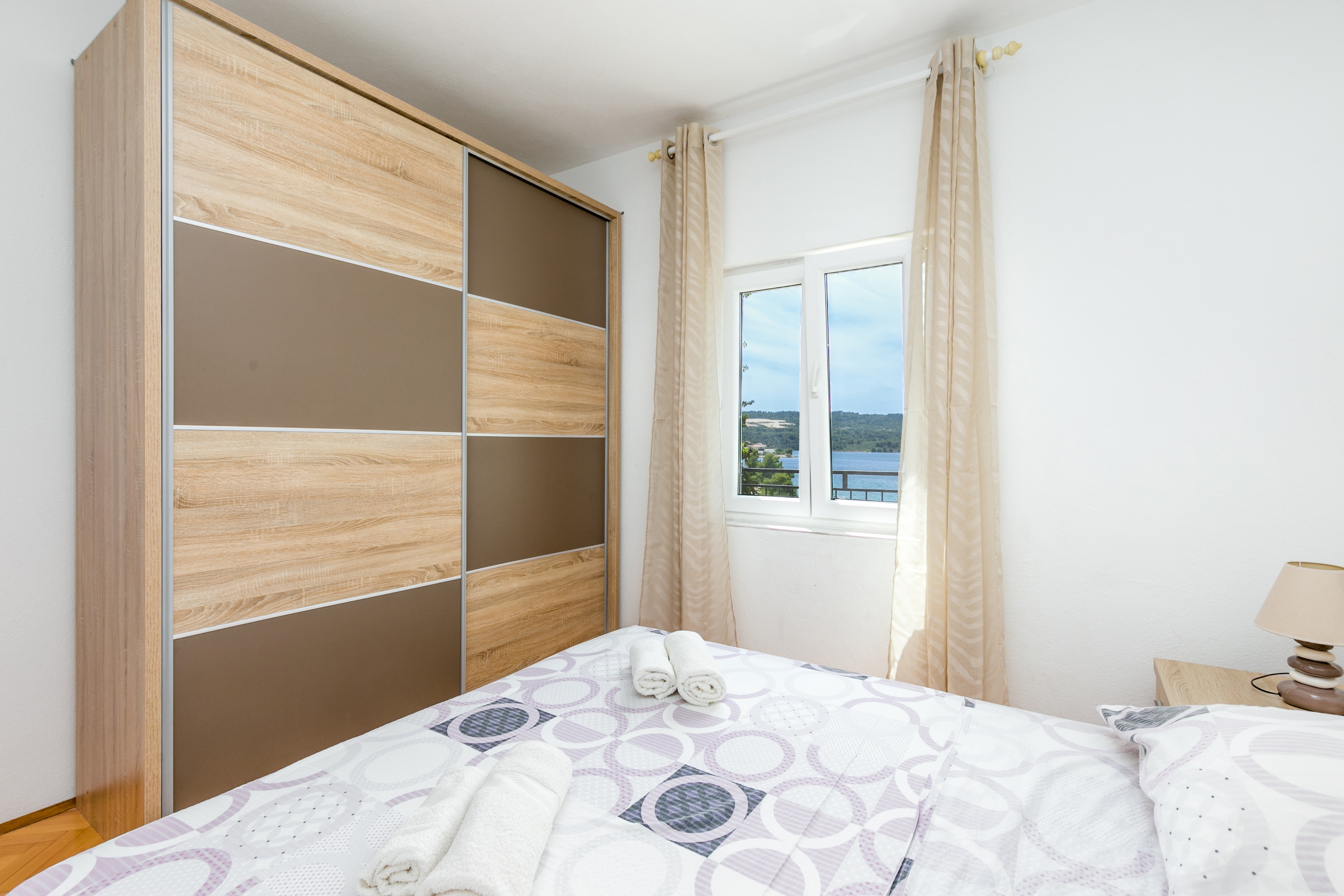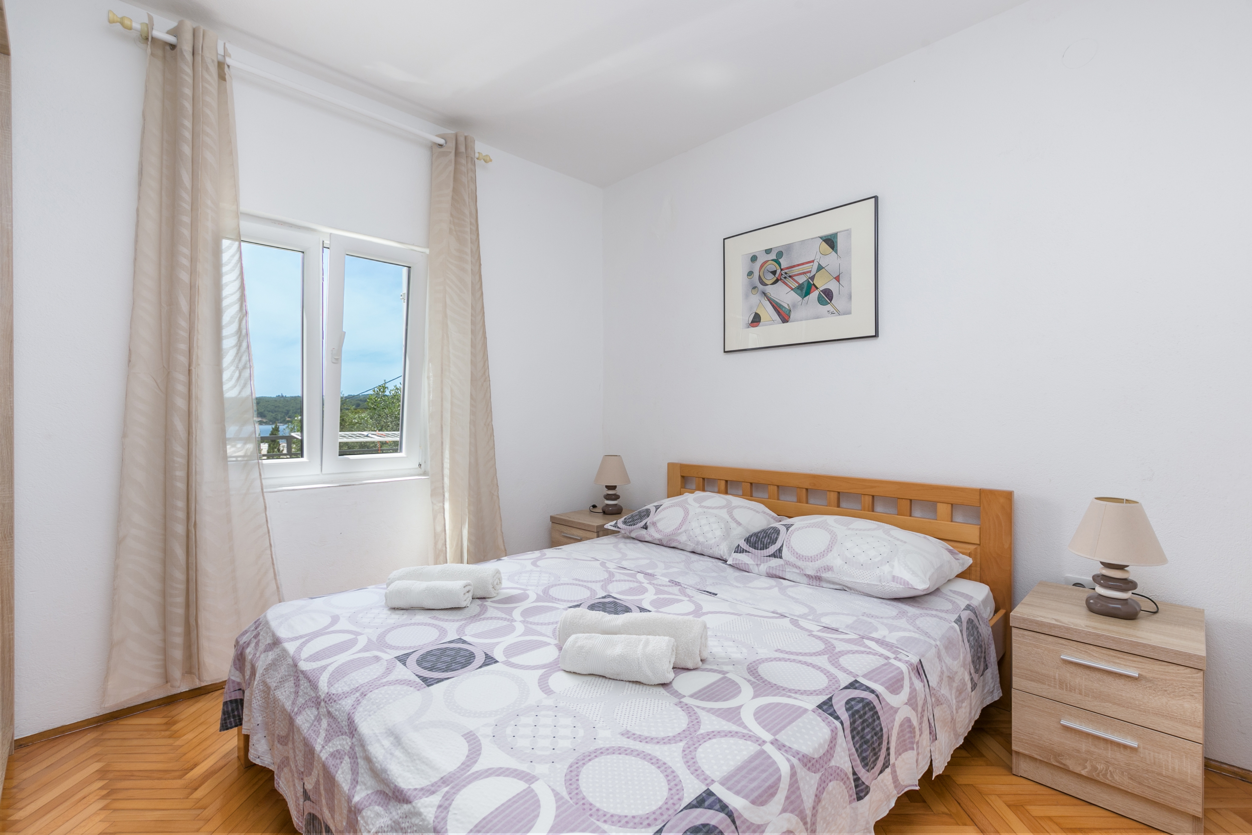 Apartment can accommodate 5 guests. Beds are situated in 2 sleeping rooms, but also in the living room, within 48m2. Guests can use a private terrace to enjoy the warm summer evenings. The apartment offers the sea view. Food can be prepared using barbecue which is shared with other guests too. INCLUDED IN THE PRICE: tourist tax, final cleaning, air-conditioning, parking, internet, laundry, boat mooring, iron, ironing board, hairdryer, sunchairs. OBLIGATORY ADDITIONAL COSTS: short stay fee (surcharge depending on a number of booked nights: 30% - 1, 20% - 2, 10% - 3). The availability of additional services for your chosen dates of stay, as well as their prices (if none are listed) must be checked ahead of time. Any additional services not shown in the price calculation are payable directly to the property owner and only if used by the visitor.