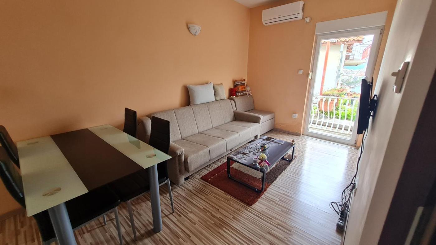 The apartment with a balcony and sea views has 1 bedroom, a living room, a flat-screen TV, an equipped kitchen with a microwave and a fridge, and 1 bathroom with a shower. Towels and bed linen are available in the apartment.