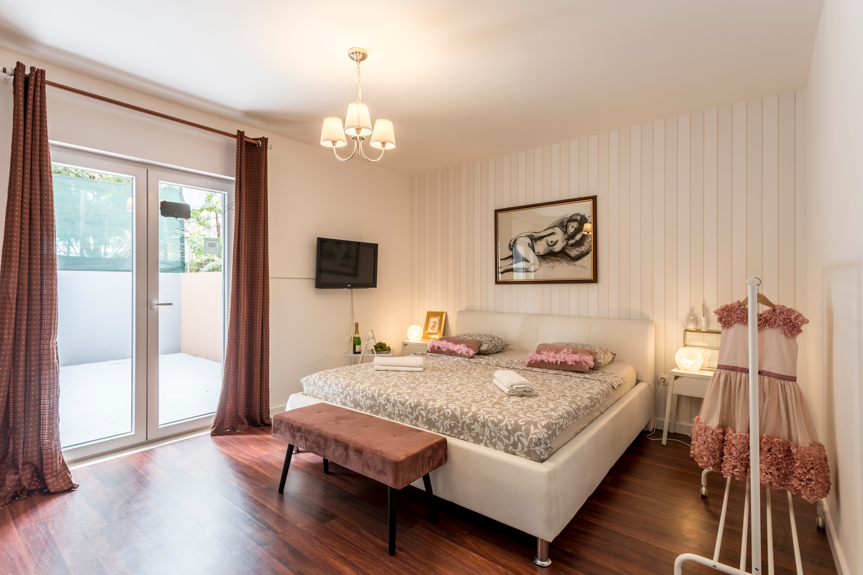 Apartment can accommodate 4 guests. Beds are situated in 3 sleeping rooms, within 76m2. Guests can use a private terrace to enjoy the warm summer evenings. For full enjoyment and relaxation there is a private barbecue for this accommodation guests only. During stay, there is a private pool for relaxation and pleasure. This accommodation unit welcomes pets at no additional costs. INCLUDED IN THE PRICE: tourist tax, final cleaning, air-conditioning, pool, parking, internet, pets, baby cot, iron, ironing board, hairdryer. OBLIGATORY ADDITIONAL COSTS: short stay fee (surcharge depending on a number of booked nights: 30% - 1, 20% - 2, 10% - 3). The availability of additional services for your chosen dates of stay, as well as their prices (if none are listed) must be checked ahead of time. Any additional services not shown in the price calculation are payable directly to the property owner and only if used by the visitor.