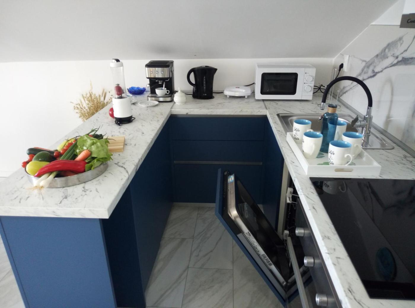 Two-Bedroom Apartment. Boasting a private entrance, this air-conditioned apartment includes 1 living room, 2 separate bedrooms and 1 bathroom with a walk-in shower and a hairdryer. Guests will find a stovetop, a refrigerator, a dishwasher and kitchenware in the kitchen. The apartment also features a barbecue. Featuring a terrace with sea views, this apartment also offers a washing machine and a flat-screen TV with satellite channels. The unit has 4 beds. ;