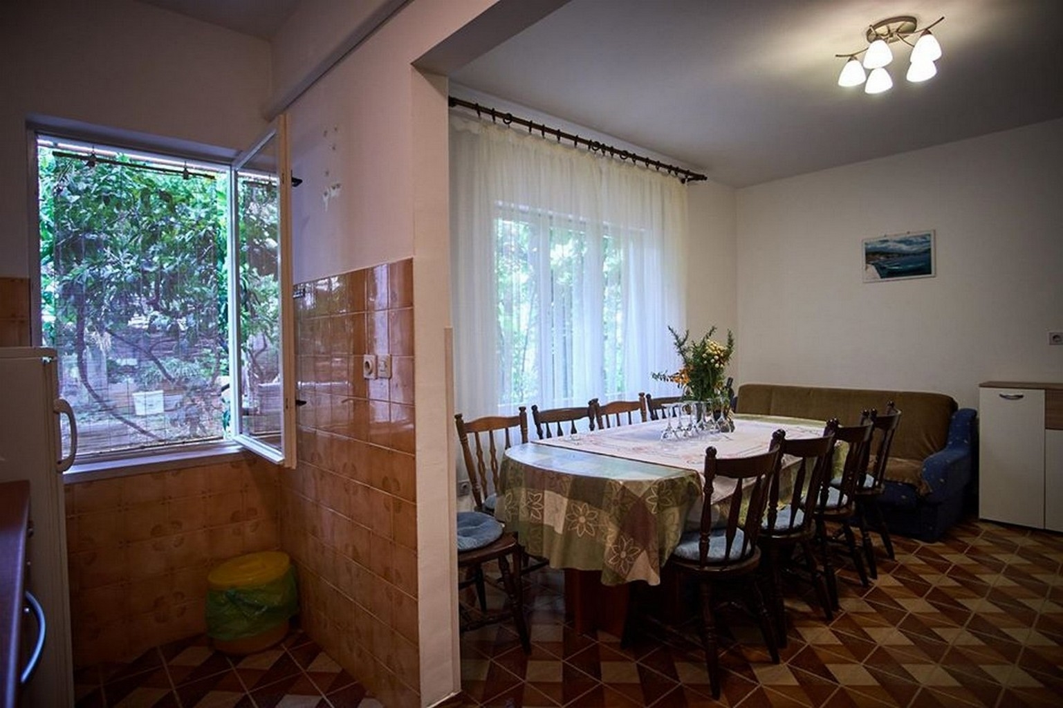 Apartment can accommodate 9 guests. Beds are situated in 4 sleeping rooms, within 93m2. Guests can use a private balcony to enjoy the warm summer evenings. The apartment offers the sea view. Food can be prepared using barbecue which is shared with other guests too. INCLUDED IN THE PRICE: tourist tax, final cleaning, air-conditioning, parking, internet, baby cot, iron, ironing board, hairdryer. OBLIGATORY ADDITIONAL COSTS: short stay fee (surcharge depending on a number of booked nights: 30% - 1, 20% - 2, 10% - 3). OPTIONAL ADDITIONAL COSTS: laundry (€10.00 washing). The availability of additional services for your chosen dates of stay, as well as their prices (if none are listed) must be checked ahead of time. Any additional services not shown in the price calculation are payable directly to the property owner and only if used by the visitor.