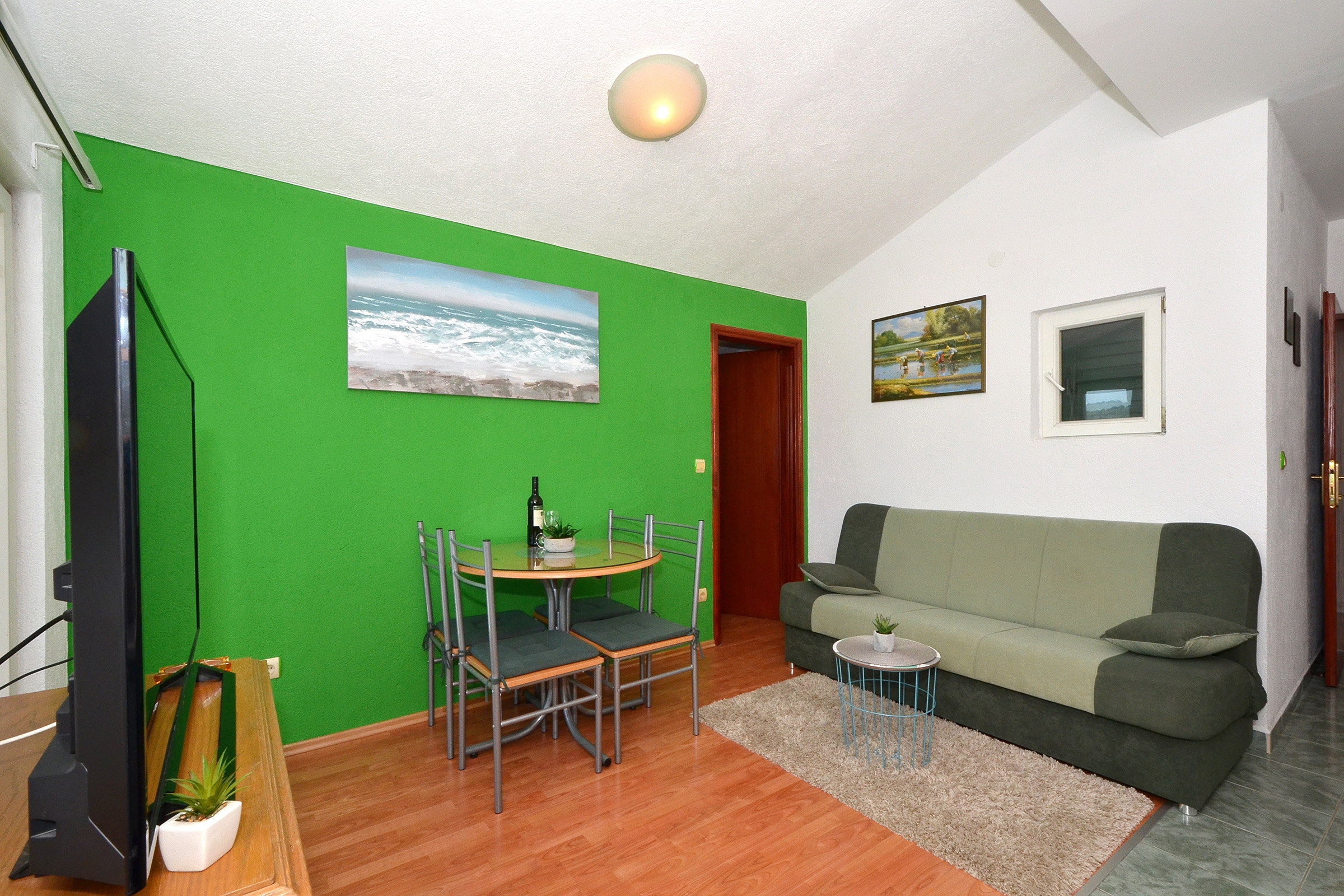 Apartment can accommodate 2 guests. Beds are situated in 1 sleeping rooms, within 35m2. Guests can use a private balcony to enjoy the warm summer evenings. The apartment offers the sea view. Food can be prepared using barbecue which is shared with other guests too. INCLUDED IN THE PRICE: tourist tax, final cleaning, air-conditioning, parking, internet, iron, ironing board, hairdryer. OBLIGATORY ADDITIONAL COSTS: short stay fee (surcharge depending on a number of booked nights: 30% - 1, 20% - 2, 10% - 3). The availability of additional services for your chosen dates of stay, as well as their prices (if none are listed) must be checked ahead of time. Any additional services not shown in the price calculation are payable directly to the property owner and only if used by the visitor.