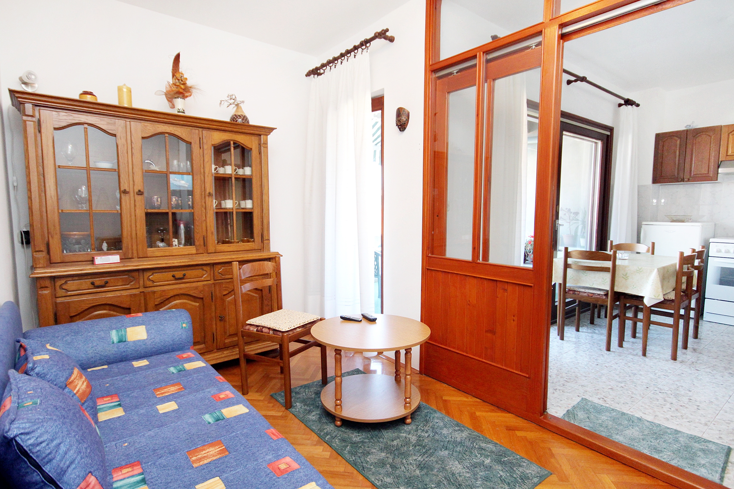 Apartment can accommodate 5 guests. Beds are situated in 2 sleeping rooms, but also in the living room, within 47m2. Guests can use a private terrace to enjoy the warm summer evenings. The apartment offers the sea view. For full enjoyment and relaxation there is a private barbecue for this accommodation guests only. INCLUDED IN THE PRICE: tourist tax, final cleaning, air-conditioning, parking, internet, laundry, iron, ironing board, hairdryer, portable barbecue, sunshade. OBLIGATORY ADDITIONAL COSTS: short stay fee (surcharge depending on a number of booked nights: 30% - 1, 20% - 2, 10% - 3). The availability of additional services for your chosen dates of stay, as well as their prices (if none are listed) must be checked ahead of time. Any additional services not shown in the price calculation are payable directly to the property owner and only if used by the visitor.