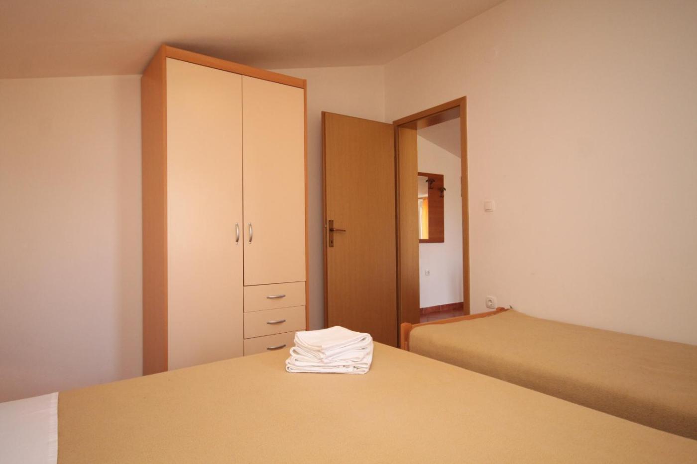 Two-Bedroom Apartment with Terrace. Boasting a private entrance, this air-conditioned apartment comes with 2 bedrooms and 1 bathroom with a shower. A kitchen fitted with a stovetop, a refrigerator and kitchenware is available for cooking and storing food. This apartment consists of a dining area, a TV with satellite channels a seating area and a terrace. The unit has 4 beds.