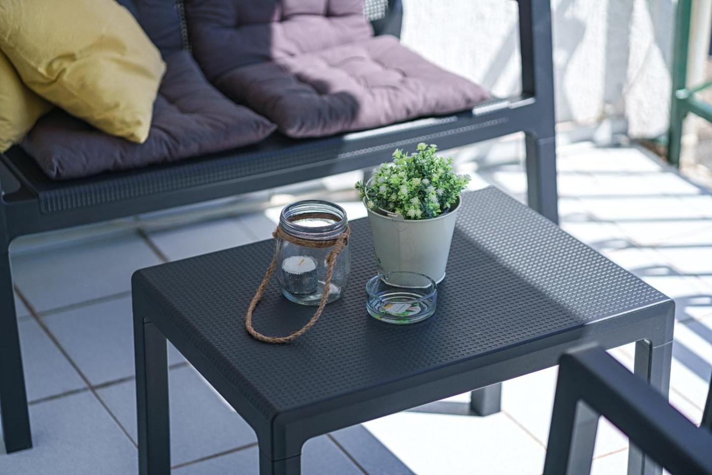 Two-Bedroom Apartment. This spacious apartment is comprised of 2 bedrooms, kitchen, a terrace and 1 bathroom with a bath or a shower. Meals can be prepared in the well-fitted kitchen, which comes with a stovetop, a refrigerator, a dishwasher and kitchenware. Featuring a balcony, this apartment also offers air conditioning, a dining area and a flat-screen TV. The unit offers 4 beds.