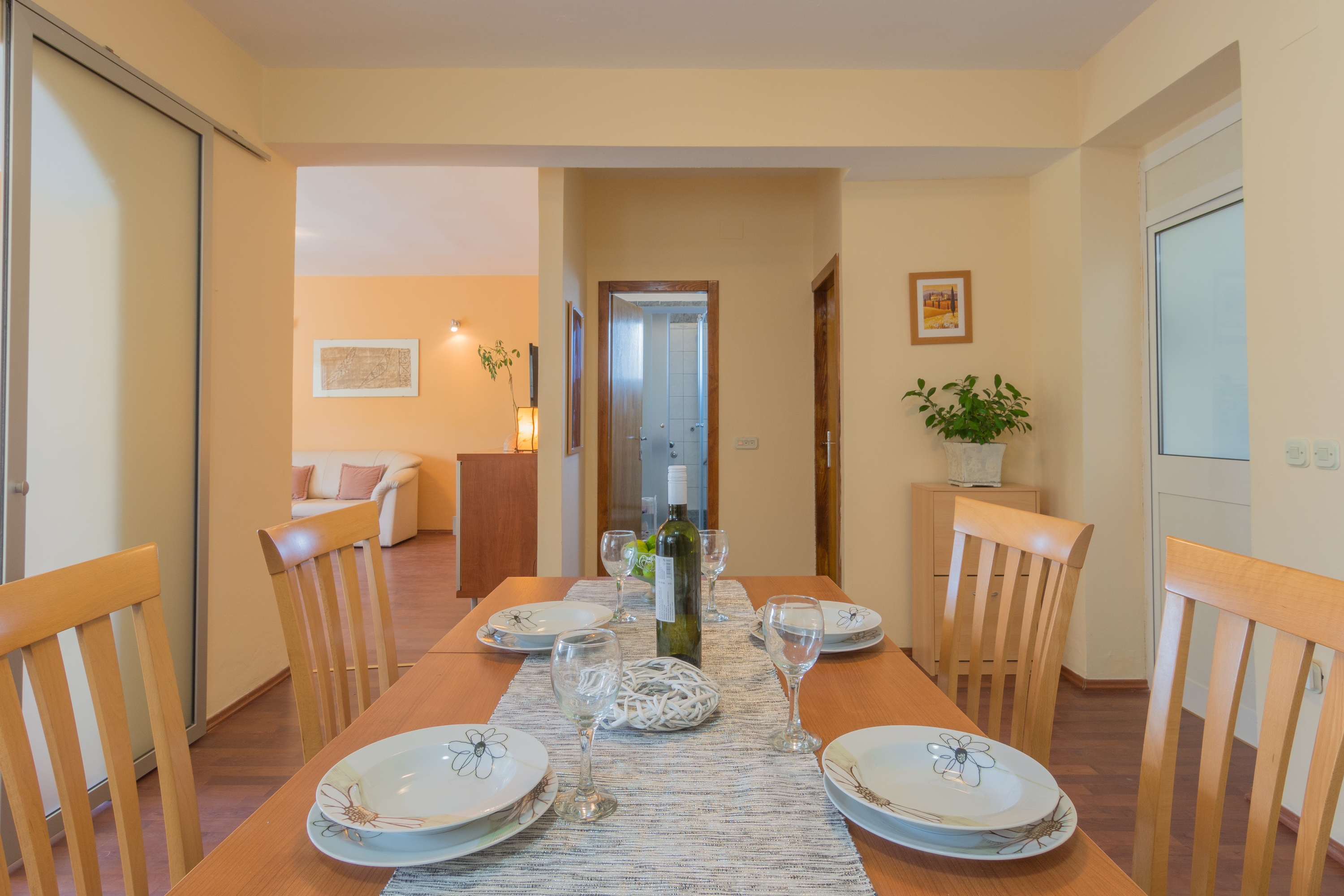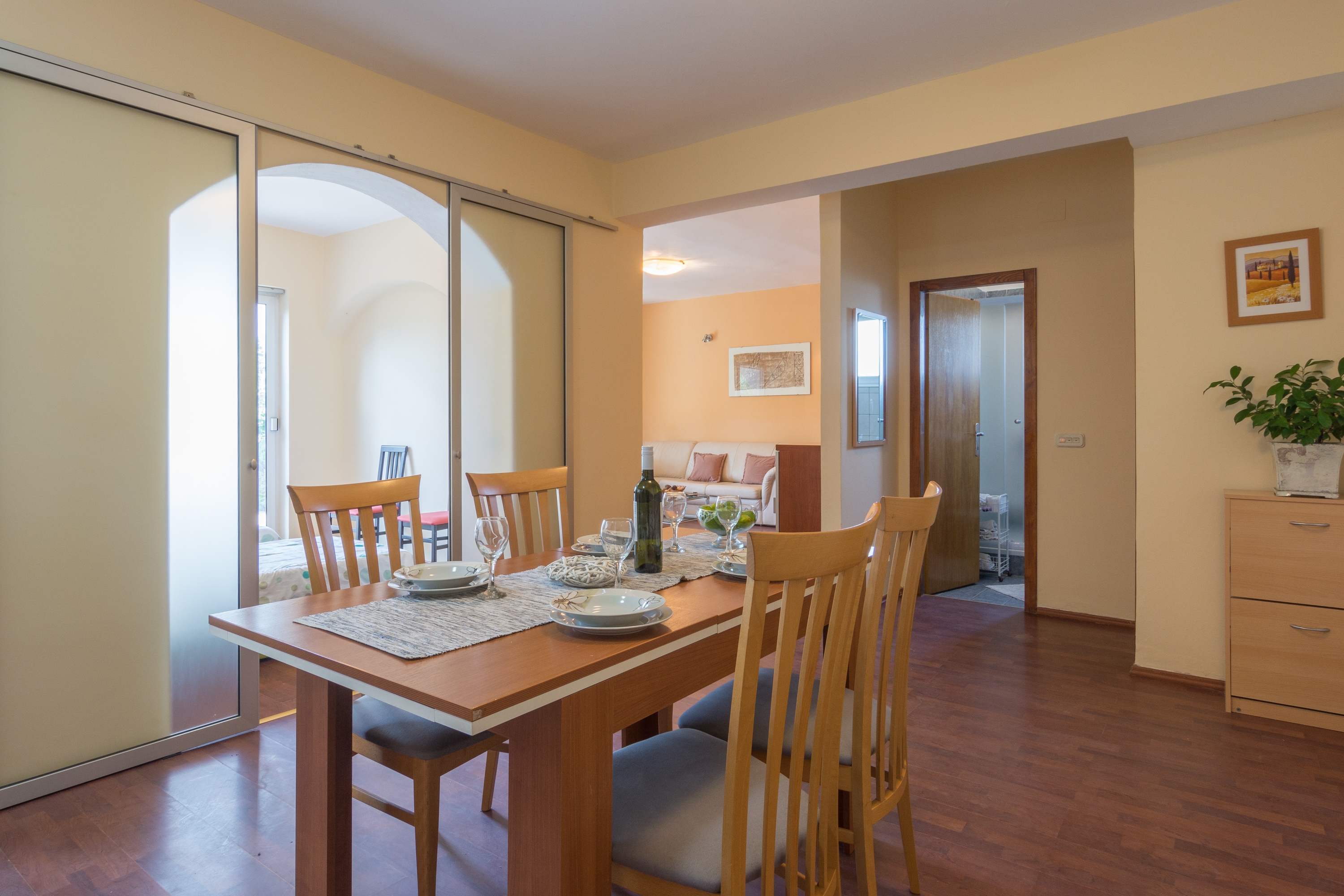 Apartment can accommodate 5 guests. Beds are situated in 2 sleeping rooms, but also in the living room, within 59m2. Guests can use a private terrace to enjoy the warm summer evenings. The apartment offers the sea view. Food can be prepared using barbecue which is shared with other guests too. This accommodation unit welcomes pets at an additional charge. For the booked accommodation unit the deposit is paid directly to the owner upon check-in (deposit amount is displayed on the website) INCLUDED IN THE PRICE: tourist tax, final cleaning, air-conditioning, parking, internet, baby cot, iron, ironing board, hairdryer. OBLIGATORY ADDITIONAL COSTS: deposit (€100.00 one-time payment). OPTIONAL ADDITIONAL COSTS: laundry (€5.00 washing), boat mooring (€20.00 per night), pets (€10.00 per night), bicycle (€7.00 daily (per piece)). The availability of additional services for your chosen dates of stay, as well as their prices (if none are listed) must be checked ahead of time. Any additional services not shown in the price calculation are payable directly to the property owner and only if used by the visitor.