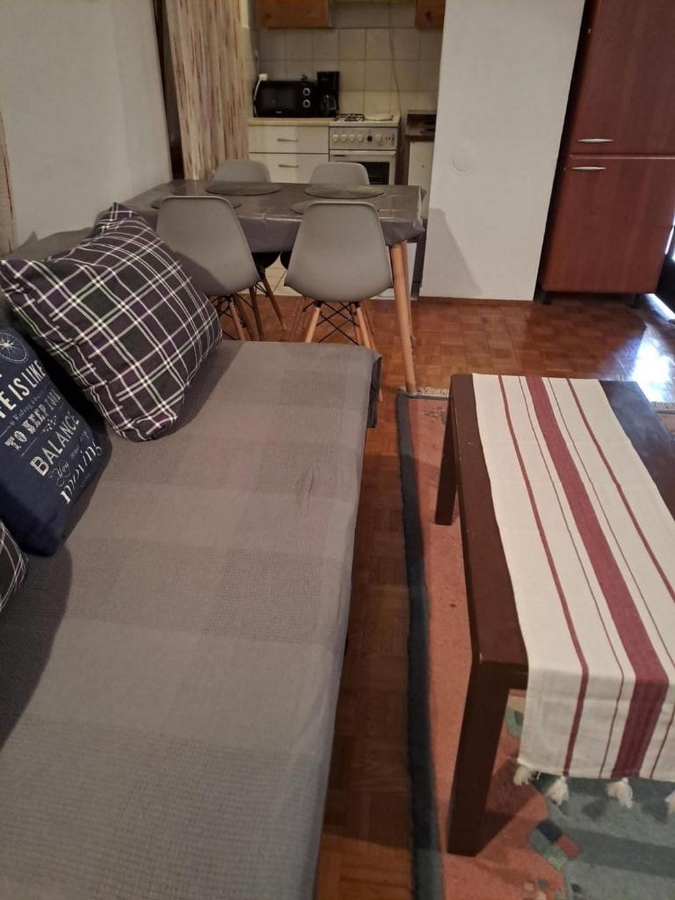Apartment can accommodate 5 guests. Beds are situated in 2 sleeping rooms, but also in the living room, within 55m2. Guests can use a private terrace to enjoy the warm summer evenings. The apartment offers the sea view. Food can be prepared using barbecue which is shared with other guests too. This accommodation unit welcomes pets at no additional costs. INCLUDED IN THE PRICE: tourist tax, final cleaning, air-conditioning, parking, internet, pets, iron, ironing board, hairdryer. OBLIGATORY ADDITIONAL COSTS: short stay fee (surcharge depending on a number of booked nights: 30% - 1, 20% - 2, 10% - 3). The availability of additional services for your chosen dates of stay, as well as their prices (if none are listed) must be checked ahead of time. Any additional services not shown in the price calculation are payable directly to the property owner and only if used by the visitor.