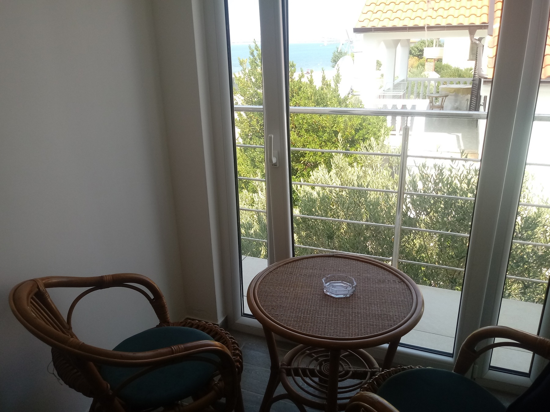 Apartment can accommodate 4 guests. Beds are situated in 1 sleeping rooms, but also in the dining room, within 30m2. Guests can use a private balcony to enjoy the warm summer evenings. The apartment offers the sea view. Food can be prepared using barbecue which is shared with other guests too. Reserved accommodation unit has a shared terrace. INCLUDED IN THE PRICE: tourist tax, final cleaning, air-conditioning, parking, internet, bicycle, baby cot, iron, ironing board, hairdryer. The availability of additional services for your chosen dates of stay, as well as their prices (if none are listed) must be checked ahead of time. Any additional services not shown in the price calculation are payable directly to the property owner and only if used by the visitor. Discounts to the base price: free day 14=13 (for reservations of 14 or more days you get one free day for the stay until 31122026).